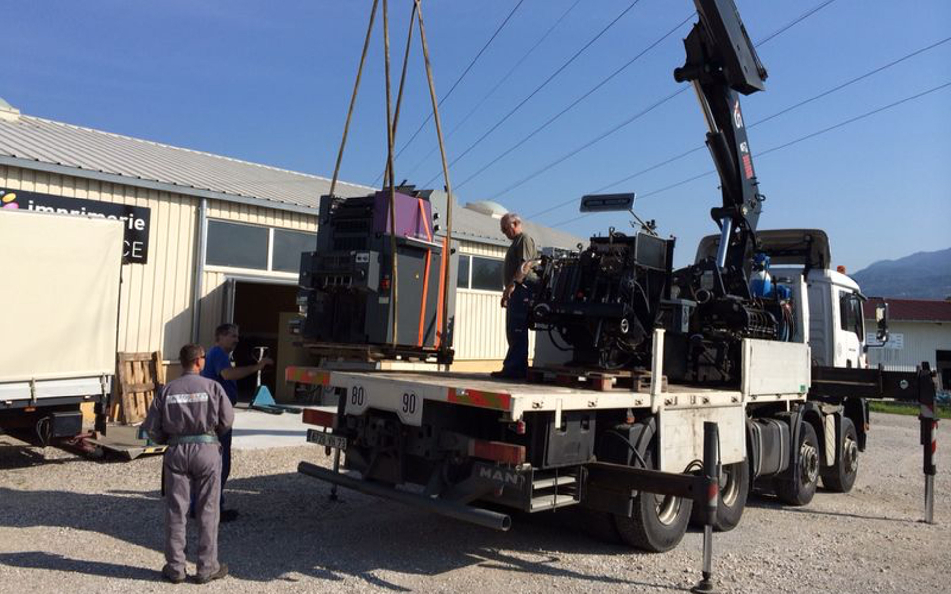 Votre imprimerie déménage? Vous avez vendu une machine? Mecangraphic, grâce à sa longue expérience, prend en charge tous les déplacements – même les plus complexes – de presses, massicots ou relieuses!